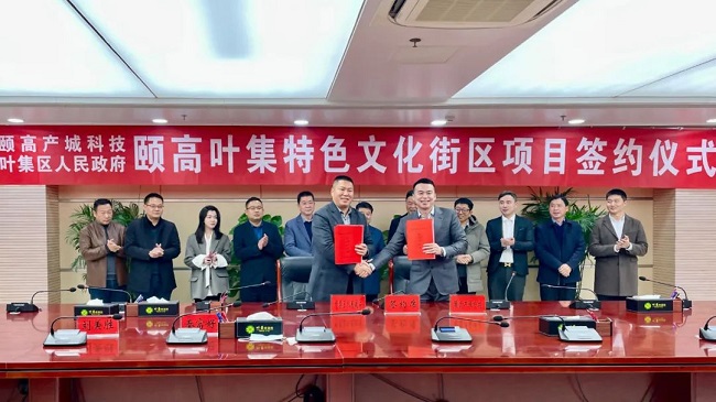 11月29日,颐高叶集特色文化街区项目签约仪式在安徽省六安市叶集区行政中心举行。叶集区委书记赵珞,区委常委、常务副区长秦富好,区人大常委会副主任汪晓峰,区政府副区长刘美胜,区政协副主席、区委办公室主任付启胜,颐高集团董事长翁南道,颐高集团副总裁、颐高产城科技总裁黄涛,颐高产城科技总裁助理马思敏以及叶集区委办公室、区投创中心、市自然资源和规划局叶集分局等领导出席签约仪式。
