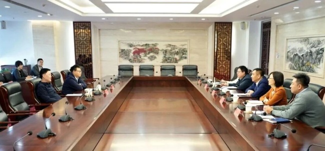 随后,与大连高新区党工委副书记、管委会主任胡凡等领导举行工作座谈。双方就未来产业培育、国际交流合作、英歌石科学城规划开发、合作模式创新等议题进行了广泛而深入的交流。会上,翁南道首先对高新区给予企业的关心支持表示感谢,并结合颐高集团在打造创新园区、培育产业生态方面的丰富实践,分享了创新合作模式新思路。他指出高新区资源禀赋优越、产业基础扎实、未来发展可期。颐高集团期待能将自身在产业运营、创新创业服务领域积累的经验,与大连高新区战略规划、区域政策与区位优势深度融合,联合商协会等各方资源共探市场化、可持续的合作新模式,为区域高质量发展注入新动能。