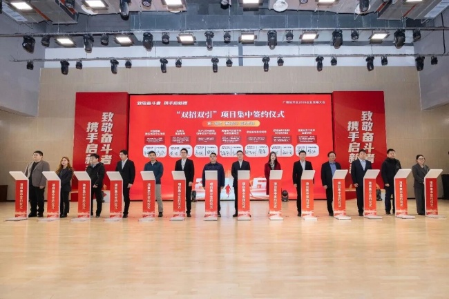 次日,广陵经开区举行“致敬奋斗者,携手启新程”2026企业发展大会隆重举行。近200位企业家、招商大使、人才代表齐聚,共话发展、共签项目、共赴新程。区委常委、经开区党工委书记王绪林,经开区党工委副书记、管委会主任吴尚以及广陵区多部门相关负责人出席活动。会上,亿茂科技副总裁于蛟龙作为企业代表上台,正式签约中欧颐高国际创新中心项目。