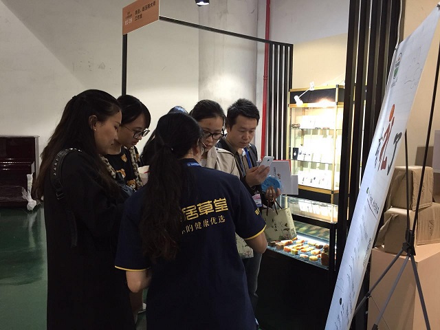 颐居草堂的卡通形象——草堂君带着各地优选茶叶和特色产品亮相文博会,颐居草堂主展位设于B1两岸生活茶艺展区,整个展位分为三大模块:茶品展示区,聚集了各种优选茶叶,如蝉十七系列茶品、迷了路花茶、姜茶、苦荞茶等;特色生态产品展示区,如自然落果临安山核桃、新疆红枣、新疆八大怪等;颐居养生园展示区,向观众展示生态、健康、圈层的酒店式养生度假小镇。