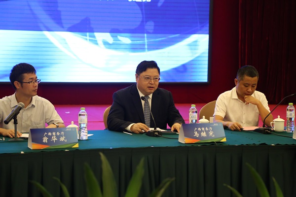 广西商务厅副厅长马继宪出席推介会并致辞,他向与会者分享了广西在参与国家“一带一路”战略中,发展电子商务的独特优势和巨大机遇,介绍了全区开放发展大会主要精神和有关政策文件。广西通过深入实施“电商广西、电商东盟”工程,在中国-东盟信息港、跨境电商、农村电商、电商扶贫、发展环境等方面取得“五个新突破”。2016年广西电子商务交易额6180亿元,同比增长39.8%。