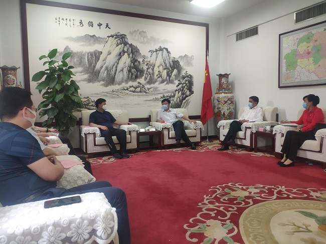 签约仪式前,颐高集团董事长翁南道受邀与驻马店市委书记陈星交流数字经济平台搭建、美丽乡村激活、产业生态打造等相关经验。