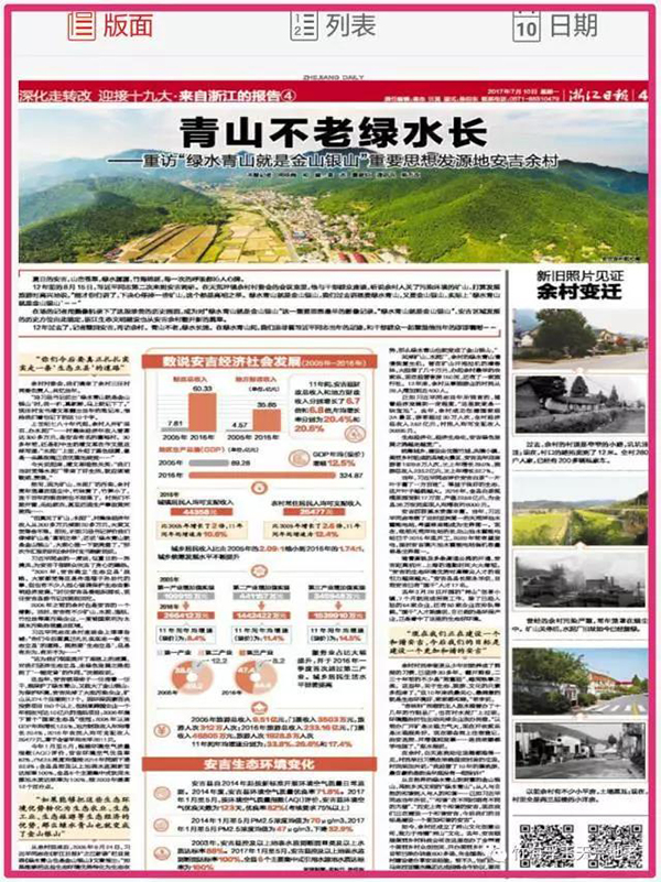 ▼十九大前的浙江声音,浙报头版连整版的震撼安吉