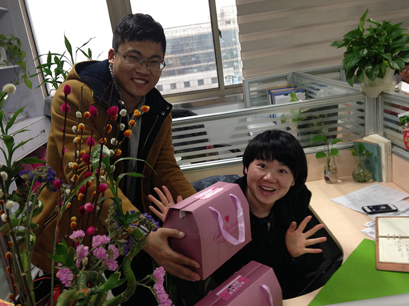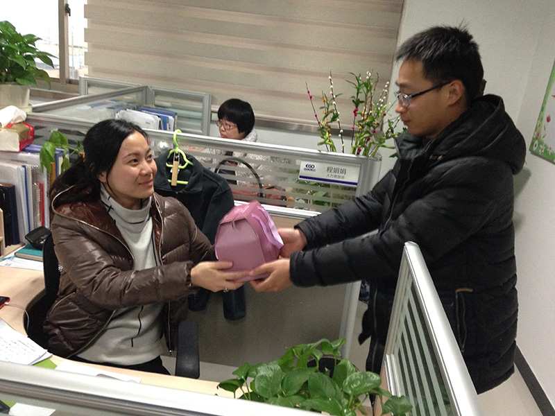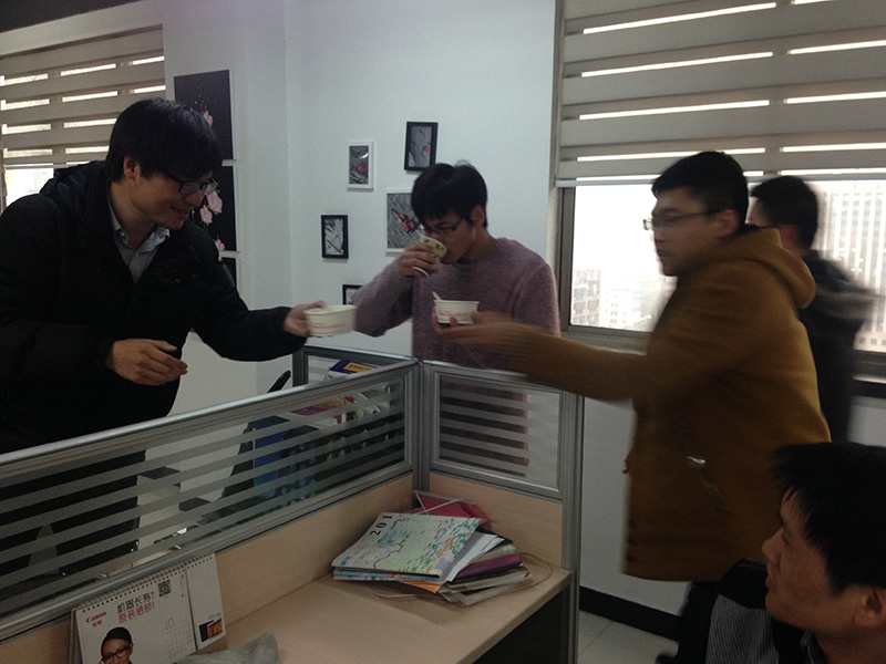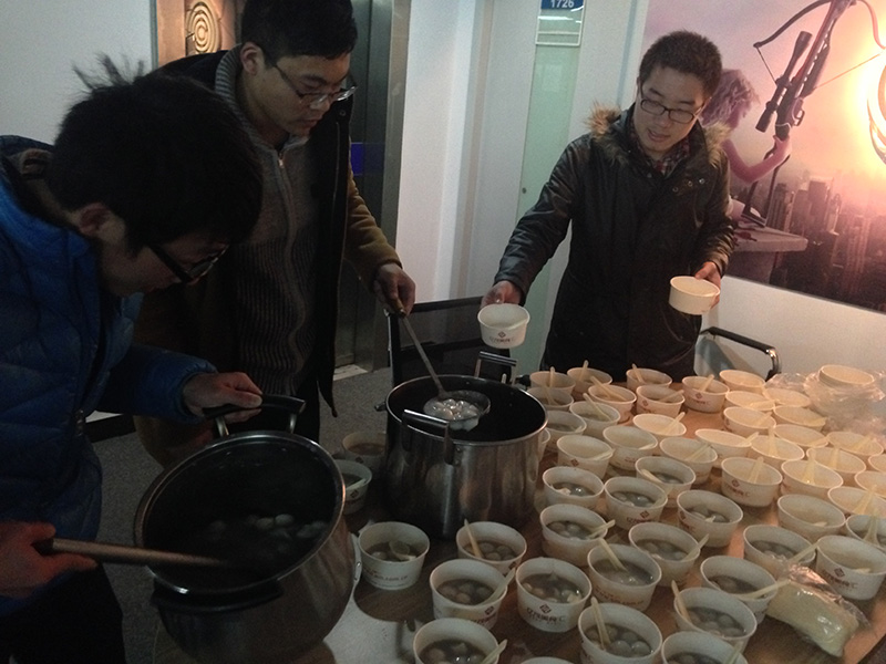 贴心暖男为大伙送上热腾腾的元宵,暖心的同时还有惊喜,有部分幸运小伙伴吃到了特殊馅料的元宵,拿到了绿色小盆栽。为了不错过对颐高女神的祝福,暖男们提前为女神过节,亲手送上礼物,提前送祝女神节日快乐。元宵节恰逢大雪,但颐高办公区内洋溢着暖暖的节日气氛。